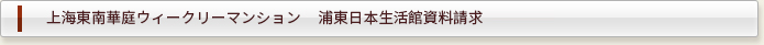 上海東南華庭ウィークリーマンションの入居情報に関する資料、また浦東日本生活館のテナント情報に関する資料送付をご希望されるお客様は、下記入力フォームに必要事項をご記入の上"確認"ボタンをクリック、内容を確認し、"送信"ボタンを押してください。2営業日以内に、お客様に返答させていただきます。